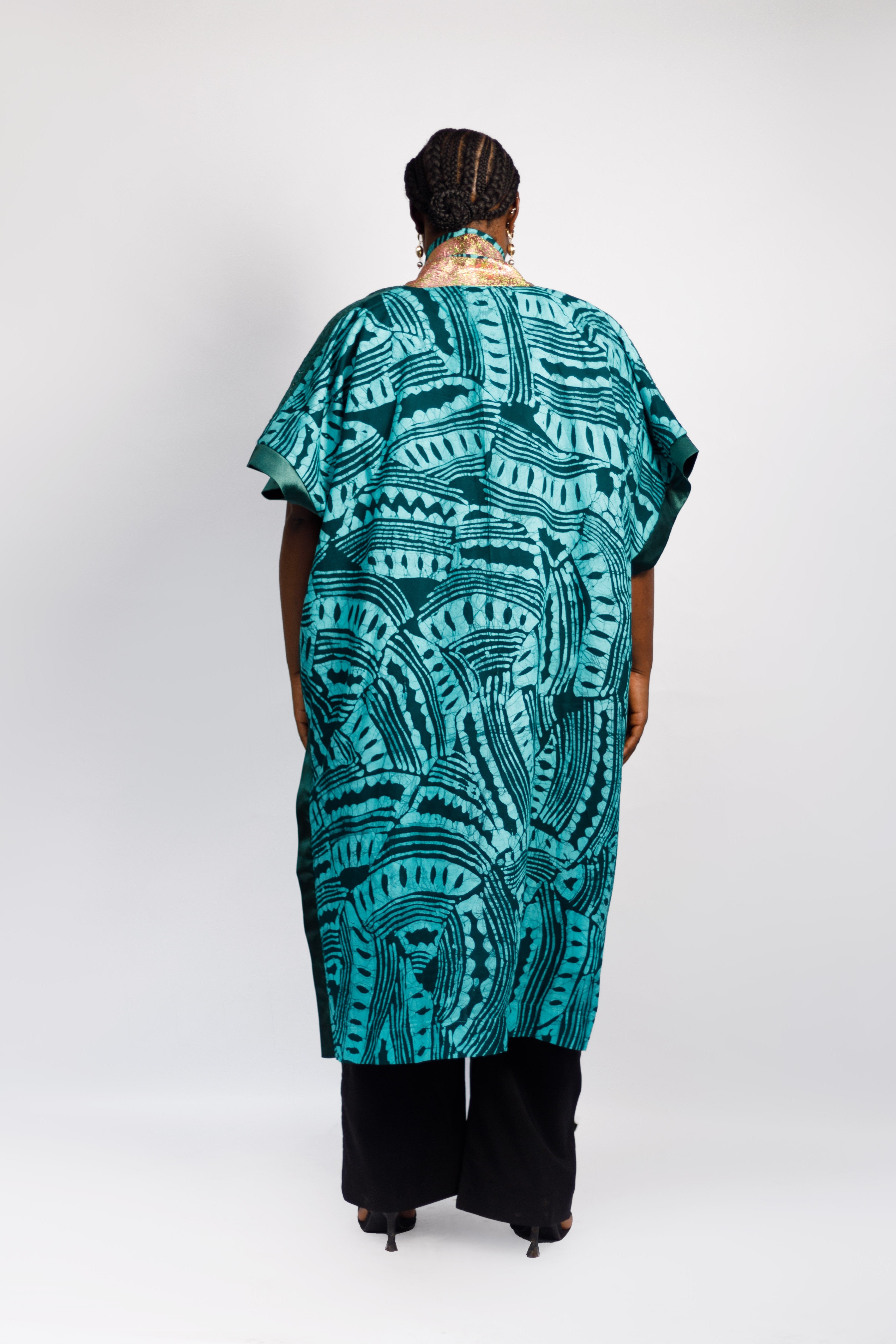 The Kimono Jacket is a versatile statement piece that blends contemporary style with African-inspired artistry. Its flowing cut and relaxed fit make it perfect for layering over dresses, tops, or trousers, instantly elevating your look with sophistication. Designed for both casual chic and formal elegance, the Kimono Jacket is your go-to piece for effortless style, comfort, and cultural charm.