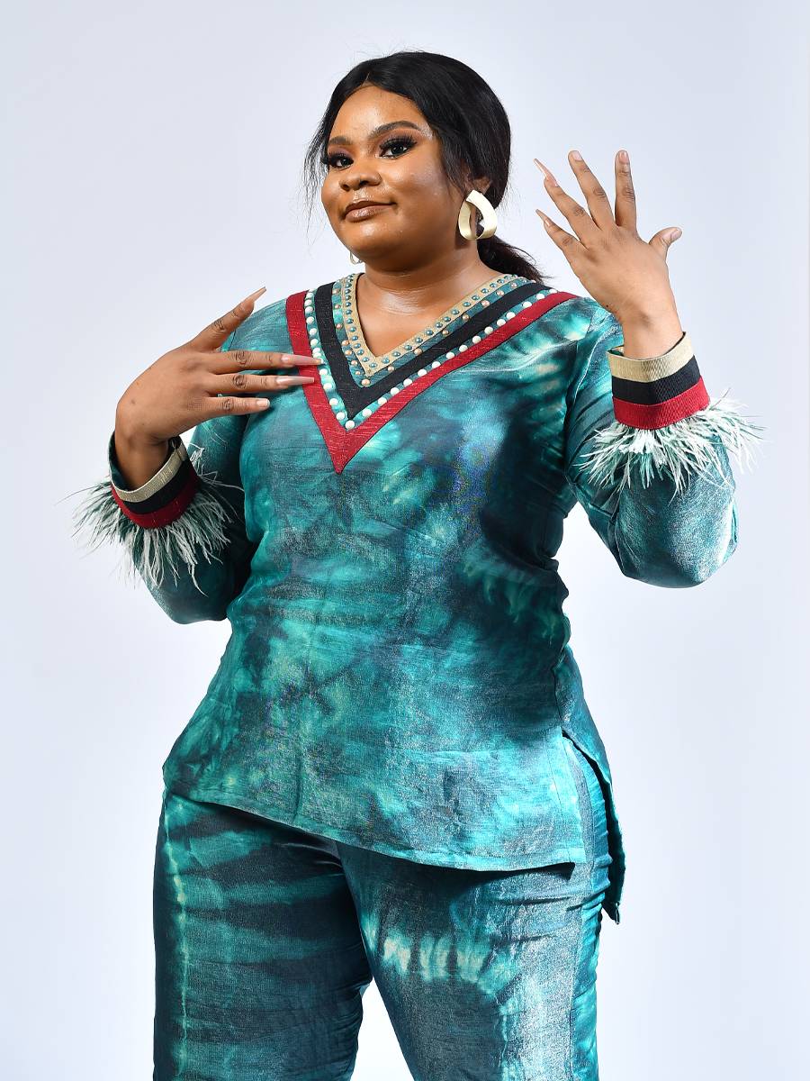 LILY | the flawless silk and adire style presents a flattering for real SOTA woman.