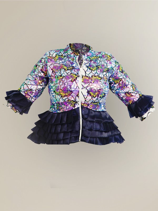 PATRICIA SEQUENCED POP JACKET is a sexy ensemble that can be sold separately as well as a set. The top is made in a rich fabric, having an edgy ruffled sleeve with more ruffled effect as a design detail. Perfect for a hang-outs with the girls or with that special someone. shop ANKARA SEQUENCED JACKET.